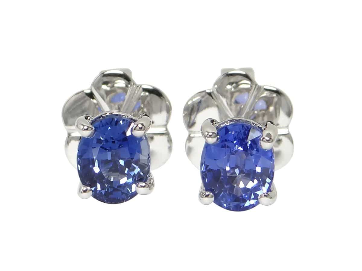 18ct White Gold stud Earrings, showcasing lovely claw set Oval Sapphires