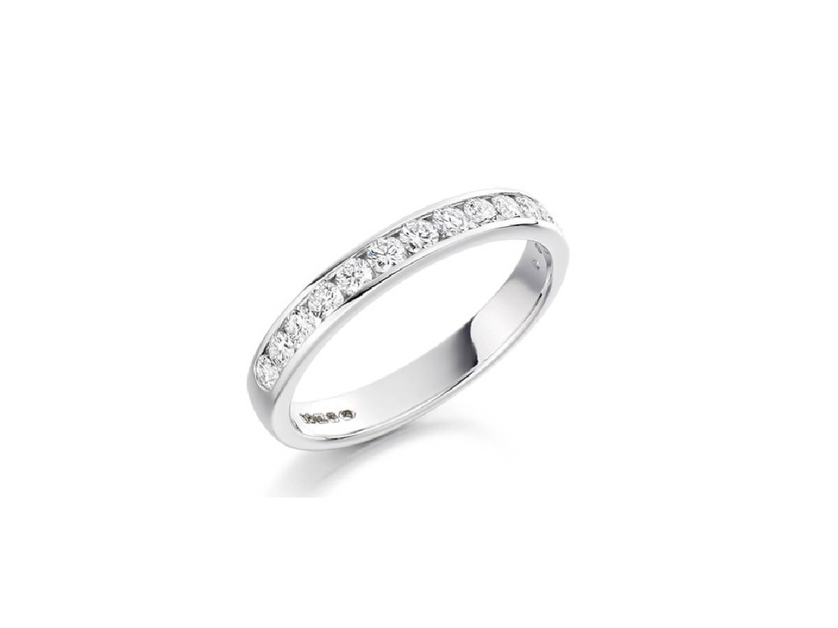 Comprising 15 brilliant cut diamonds, channel set, 50% set.