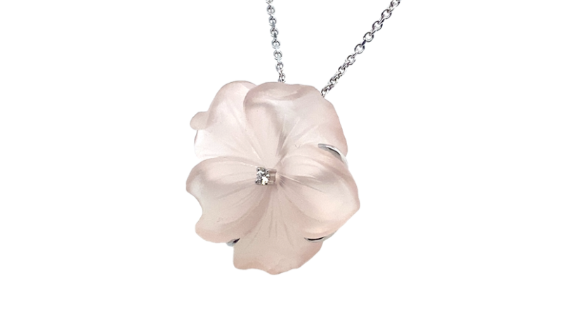 White Gold Rose Quartz Carved Pendant
