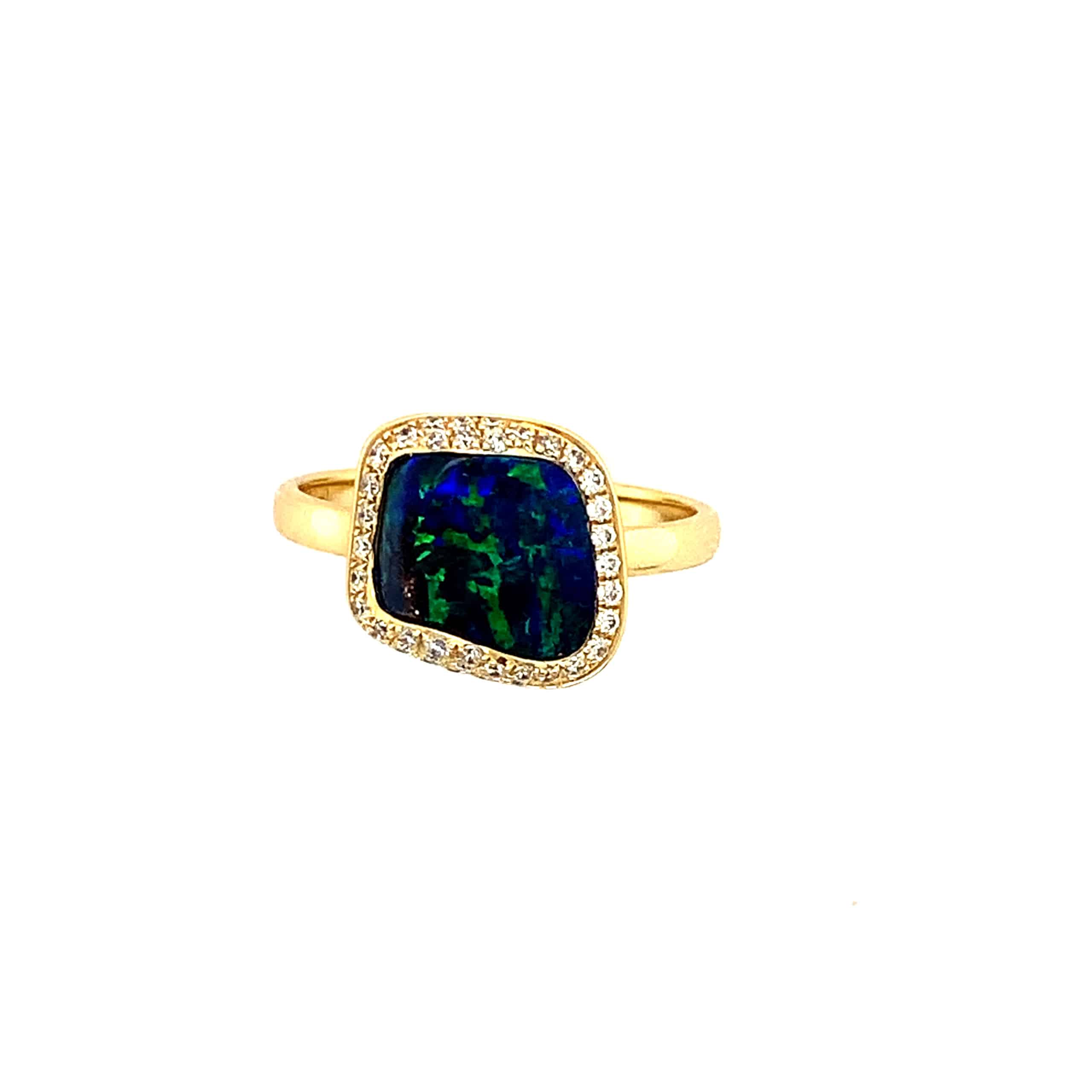 18ct Gold Abstract Boulder Opal and Diamond Ring