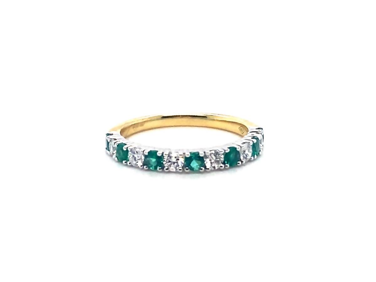 A stunning 18ct yellow gold eternity ring, with round emeralds and diamonds in a four claw setting, set in 18ct white gold.
