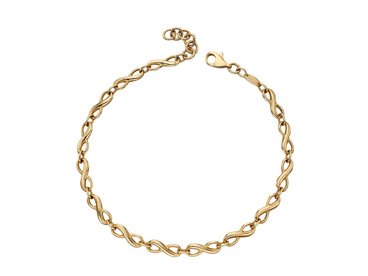 This ever popular infinity symbol bracelet is crafted in 9ct yellow gold and would make a beautiful, sentimental gift for a little loved one.