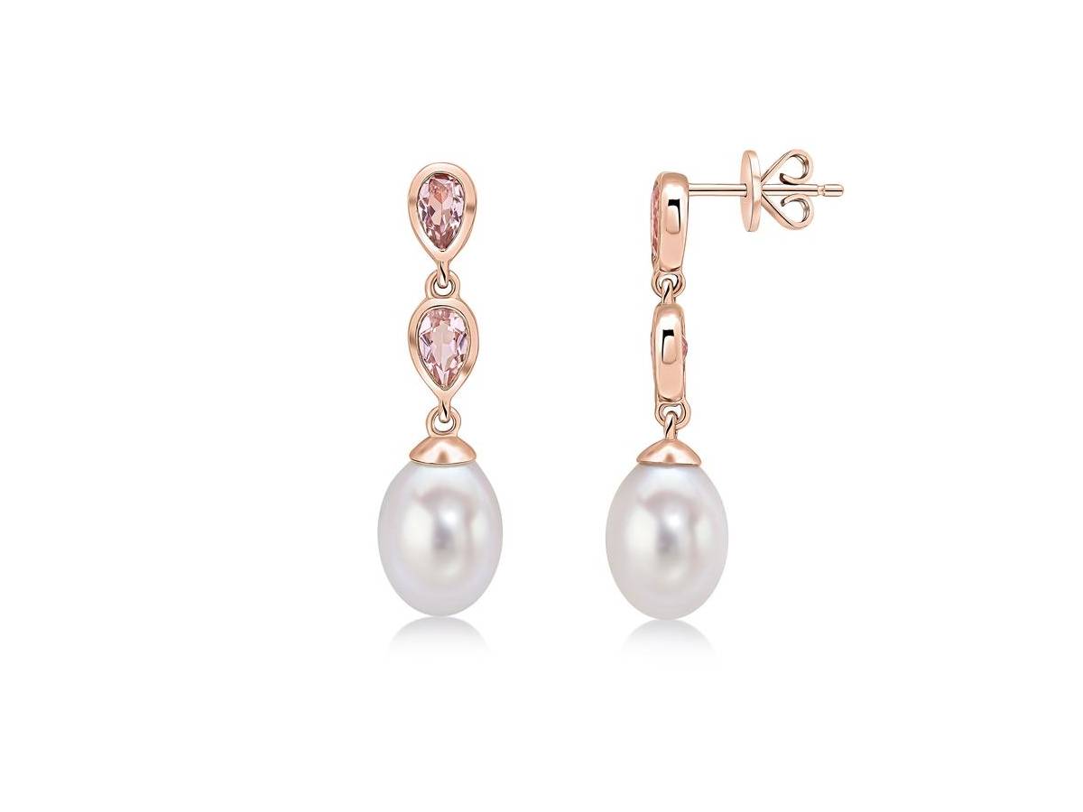 9ct Rose Gold Pearl & Morganite Drop Earrings