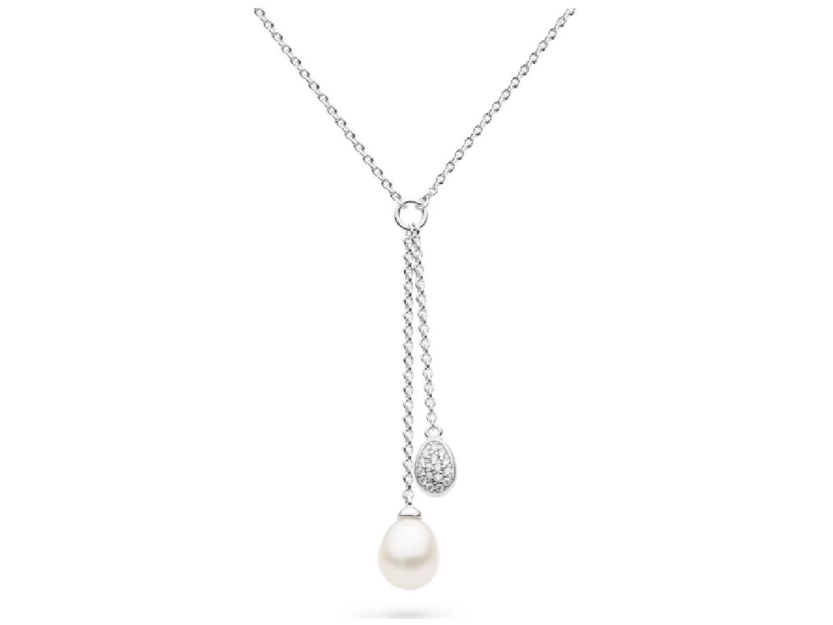 The Coast Pebble Glisten Pavé & Pearl Lariat Style Necklace is a fusion of the timeless appeal of Freshwater Pearls, the enchanting sparkle of Cubic Zirconia, and our best-selling Coast Pebble design. Crafted from premium Sterling Silver, this coastal-inspired necklace features two beautifully cascading split drop pendants in a lariat style. The delicate trace-style necklace chain is designed to sit close to the neck at a 16 or 17-inch length, with the pendants dropping down from the joining link a further 2 and 1.5 inches respectively. Finished in Rhodium plating for long-lasting brilliance.
