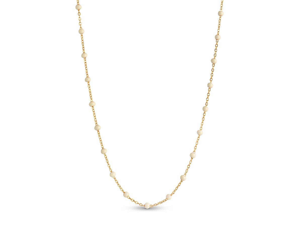 Featuring white enamel beads, the Lola Dairy necklace is perfect for wearing on it’s own, or layering with other necklaces to elevate your style!