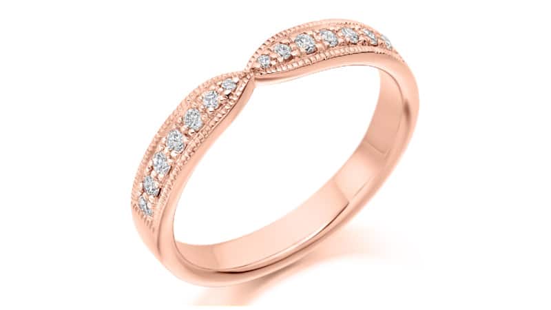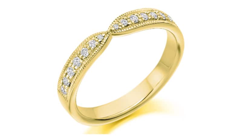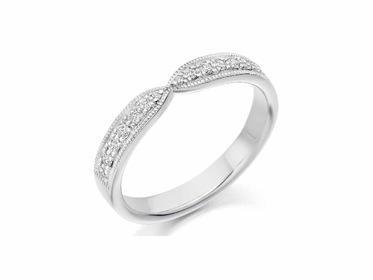 Comprising brilliant cut Diamonds with a grain setting, Diamond Coverage: 40%, Width 3.3mm and priced in 18ct White Gold.